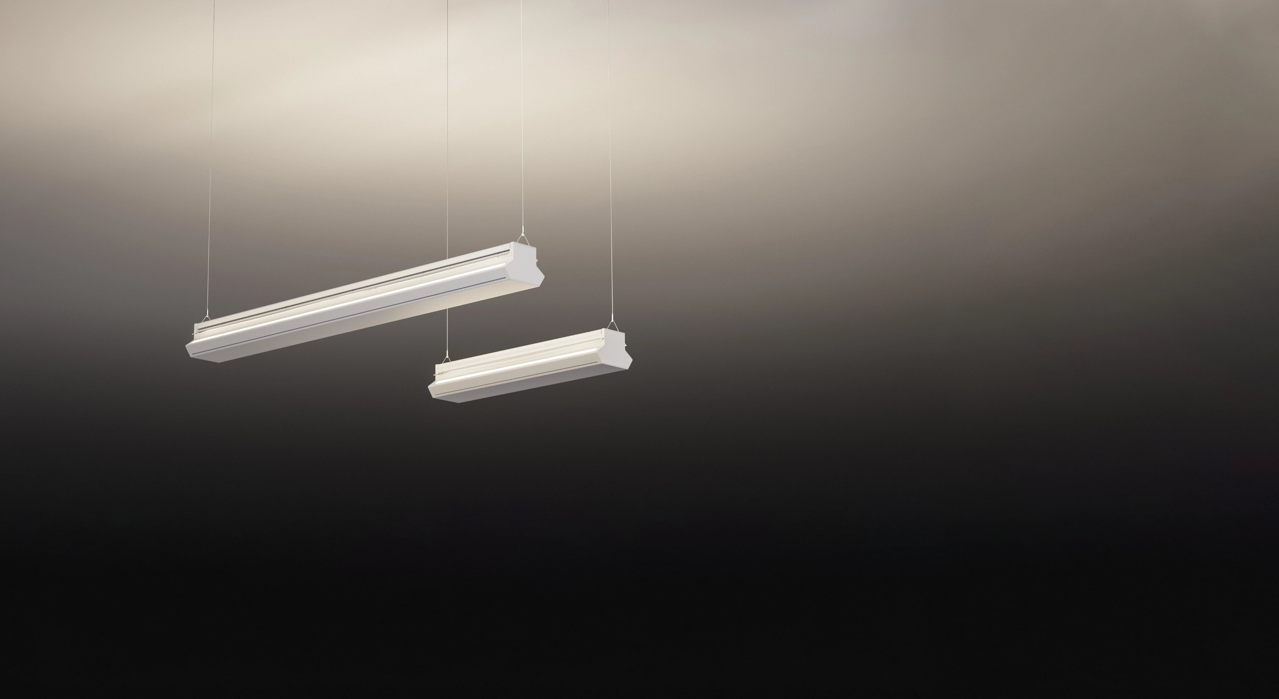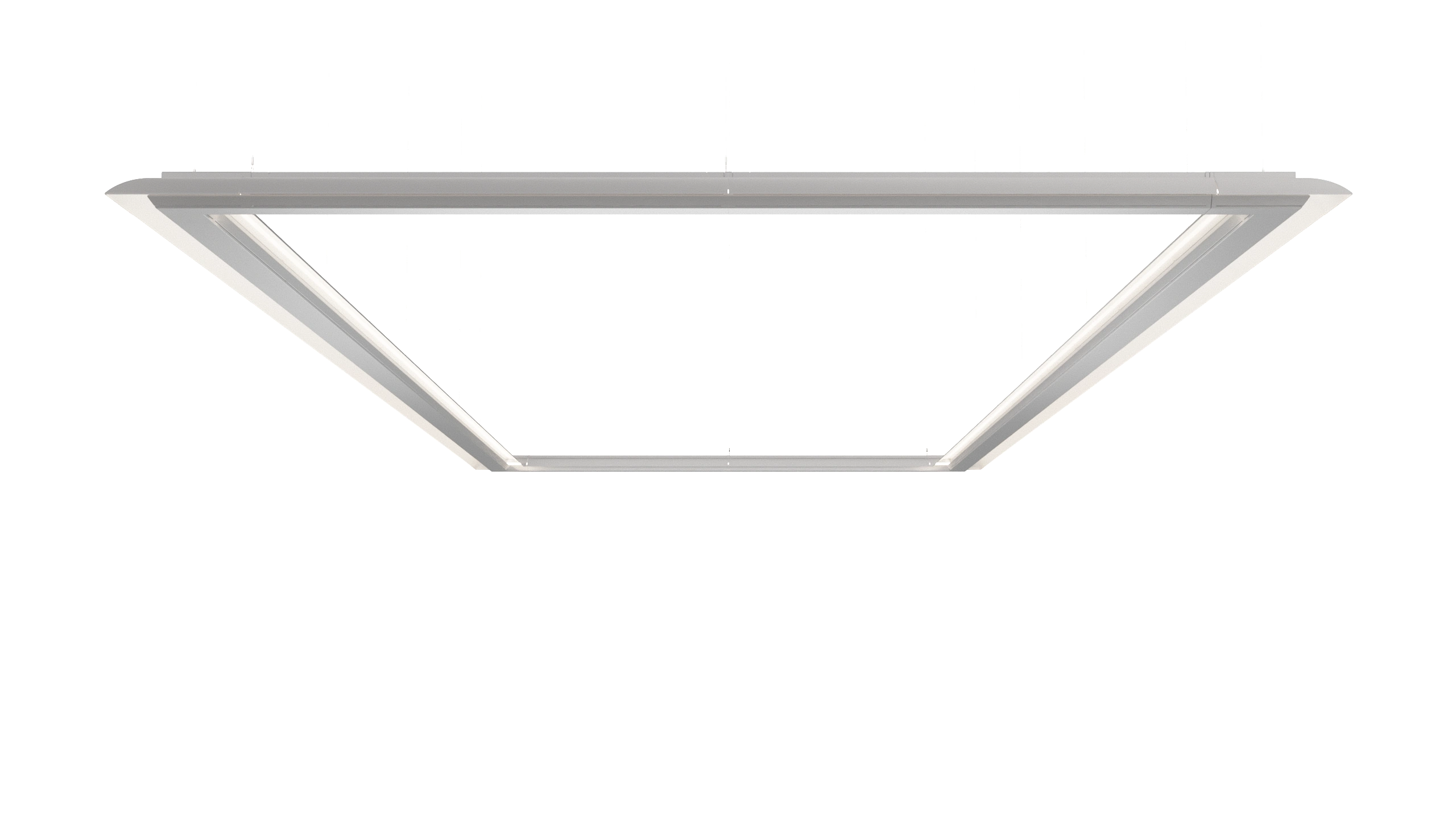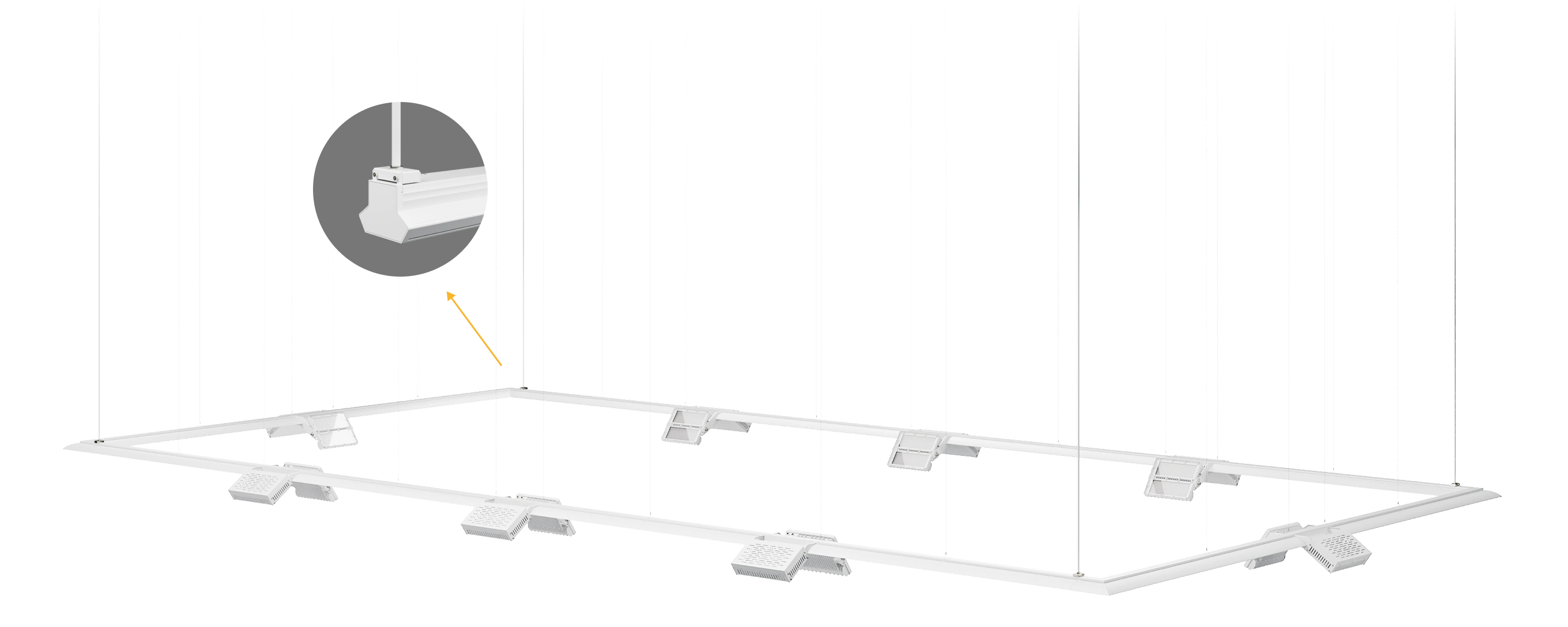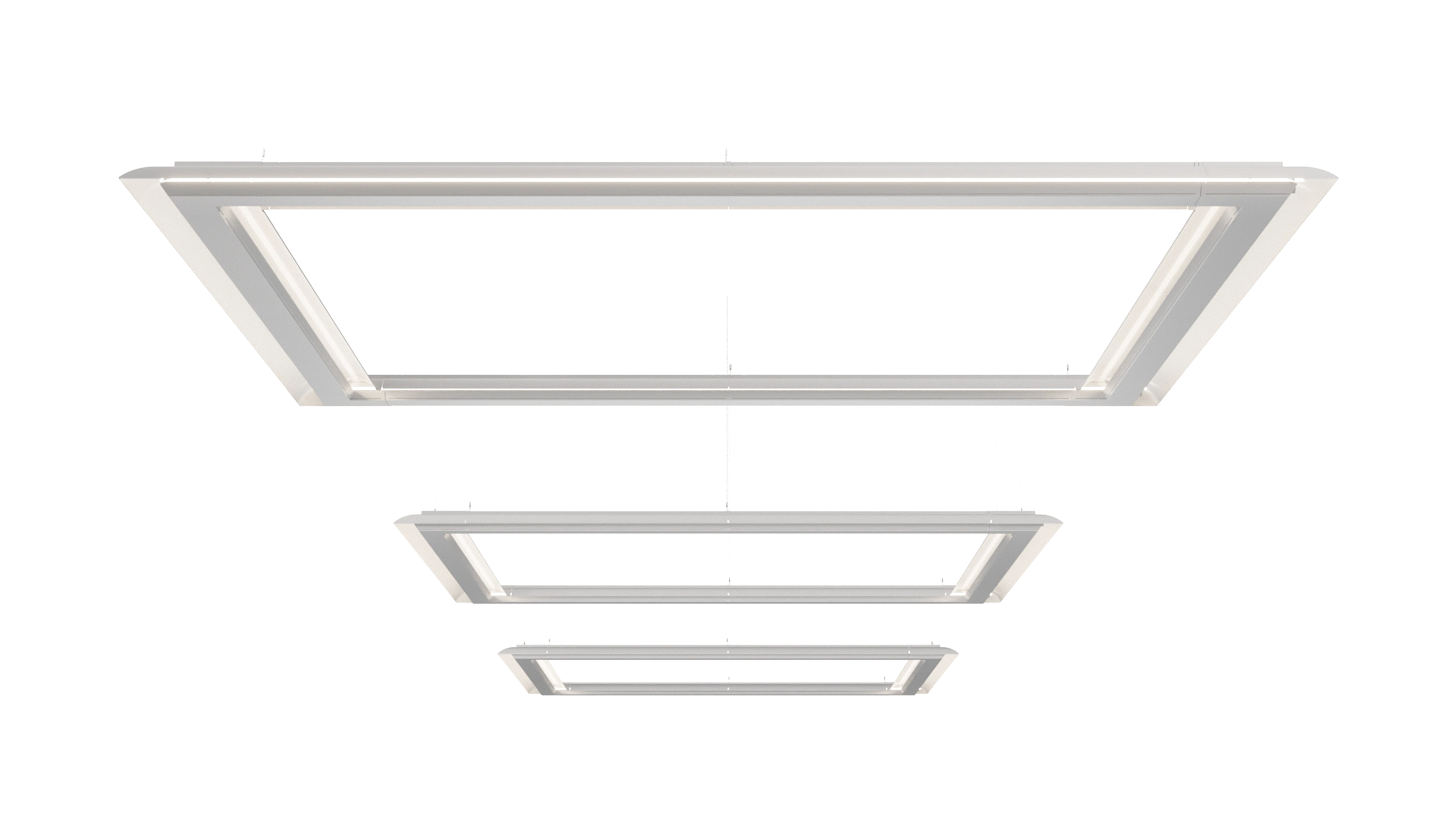 Suspended with cable or stem mount options, supporting power drops while providing added rigidity.