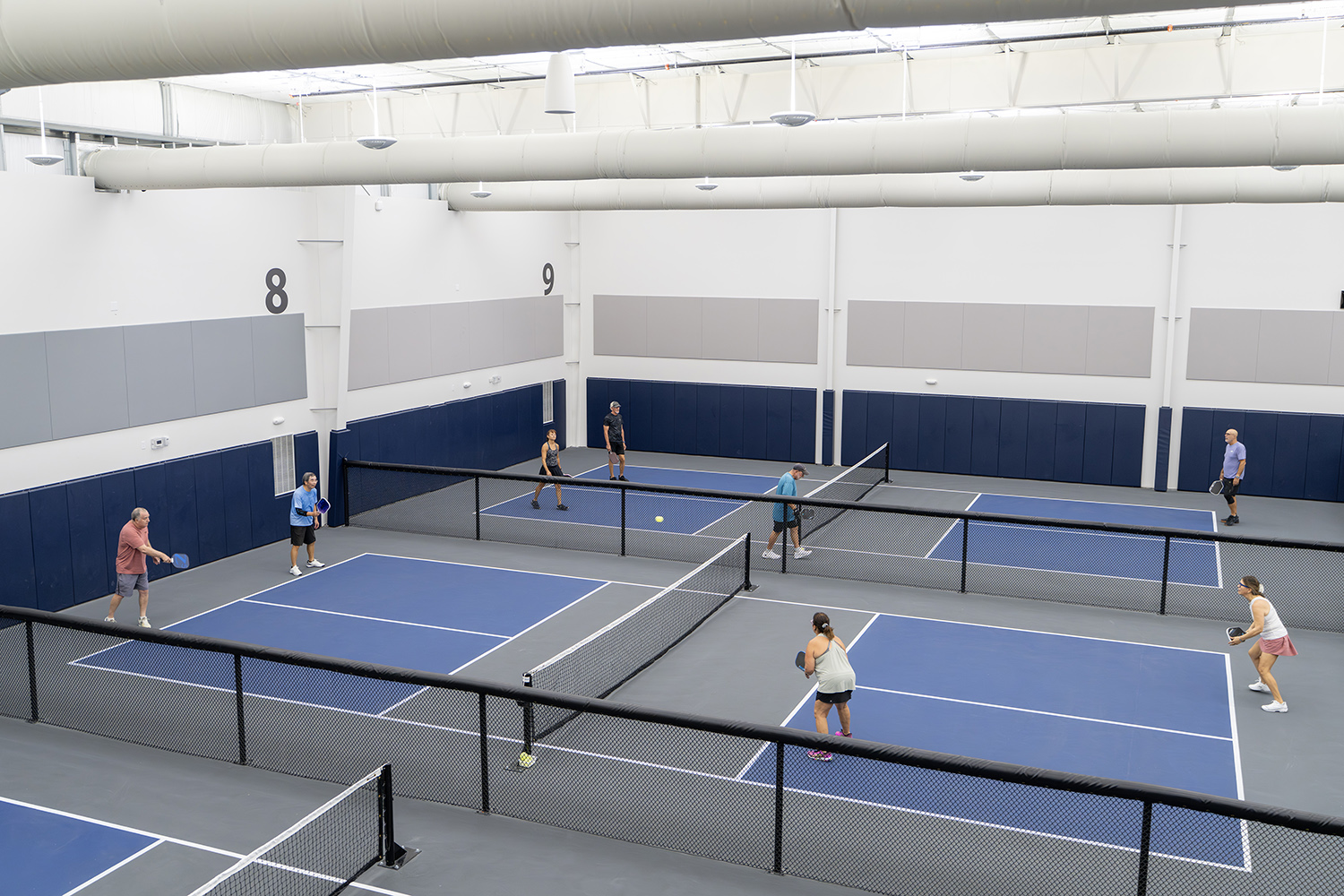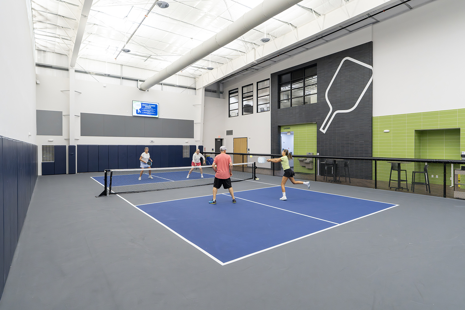 The Pickleball Club in Lakewood Ranch is a purpose-built indoor facility designed to enhance the experience of this fast-growing sport. Its architecture emphasizes openness and clarity, featuring high ceilings, acoustic wall treatments, and twelve climate-controlled courts that create a bright, balanced setting for both play and community connection. Whiz 2.0 fixtures are installed in an uplight configuration with a wide beam angle. The indirect lighting delivers a precisely controlled light field that meets the visual demands of fast-paced play, achieving excellent uniformity, supporting vertical visibility, and eliminating glare so players can track the ball clearly from any angle.